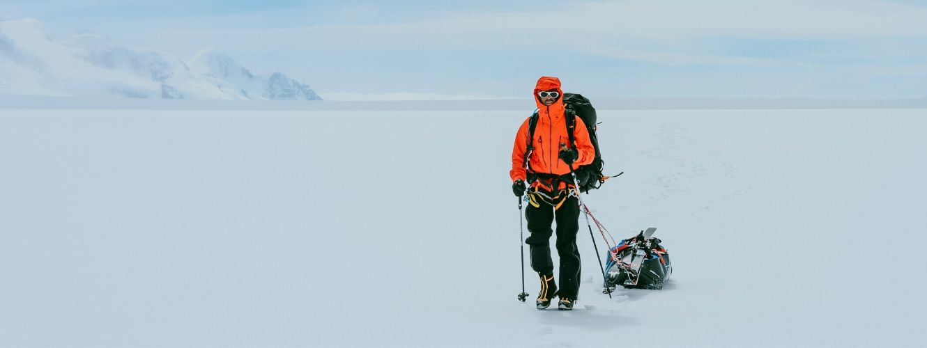 I primi due giorni, quelli che impieghiamo a raggiungere i quasi 1000m di altitudine per arrivare al ghiacciaio, passano lentamente a causa del peso degli zaini, finchè il pendio del ghiacciaio ci permette di caricare le slitte e continuare sugli sci. Con il bel tempo siamo come bambini a Disneyland e il Fitz Roy e il Piergiorgio ci accolgono per la nostra prima notte al Passo Marconi con un impressionante tramonto rosseggiante. Da qui circa 40 km ci separano dalla base del Lautaro; una lunga e monotona giornata che ci fa comprendere l’enormità del traguardo che ci siamo prefissi.