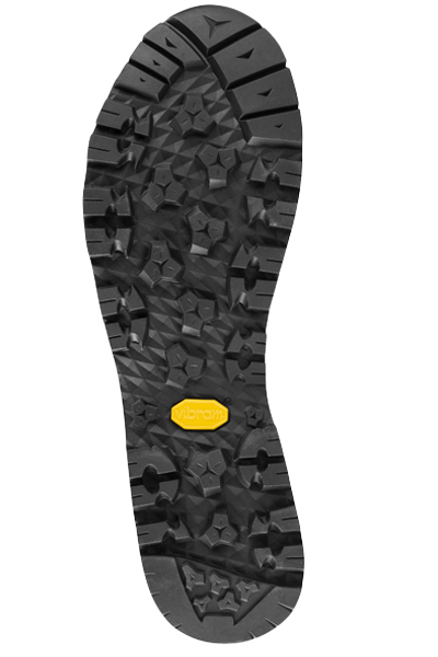 L’ intersuola in microporosa presenta due diverse densità per fornire ammortizzazione e allo stesso tempo rigidità torsionale; la sua costruzione conferisce alla scarpa ammortizzazione e protezione, mentre la suola Vibram® Pepe con Mescola Megagrip® assicura l’eccellenza nell’aderenza sui diversi tipi di terreno.