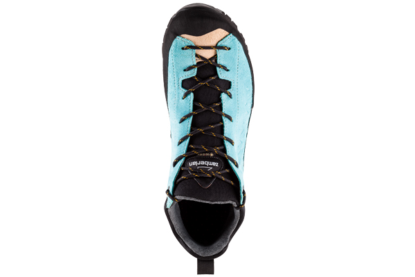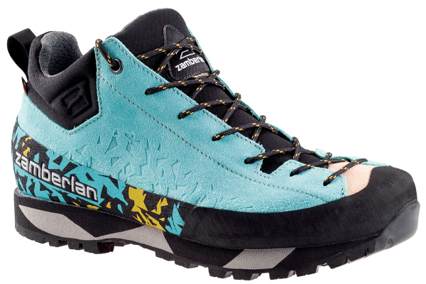 La tomaia, in pelle scamosciata embossed, è protetta da un fascione a 360°per aumentarne la resistenza all’usura e allo sfregamento contro rocce e pietrisco. Salathè è idrorepellente grazie allo specifico trattamento Hydroblock ® e la fodera in tessuto agevola la traspirazione del piede.